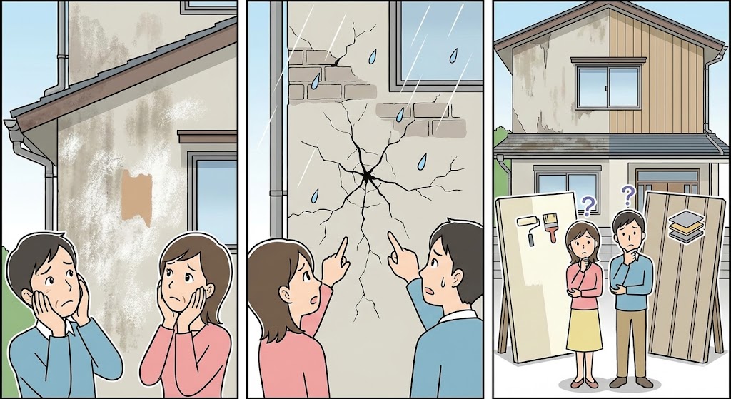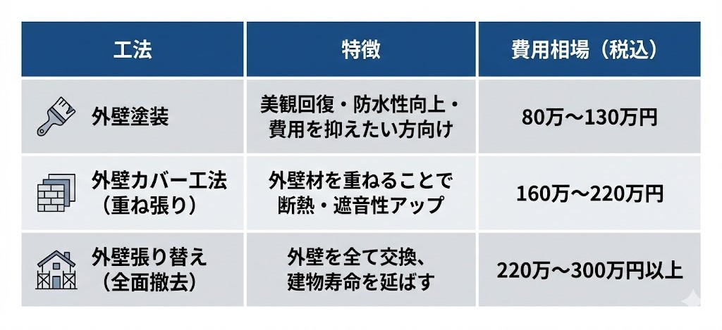 → 外壁カバー工法を検討。断熱性・遮音性も同時に向上します。