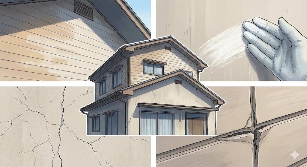 見た目がそこそこきれいでも、 ●前回塗装から年数が経っている ●コーキングが切れている ●屋根が色あせている ●雨どい、破風、軒天などの付帯部が傷んでいる こうした状態なら、近いうちに手を入れる必要が出てきます。 |