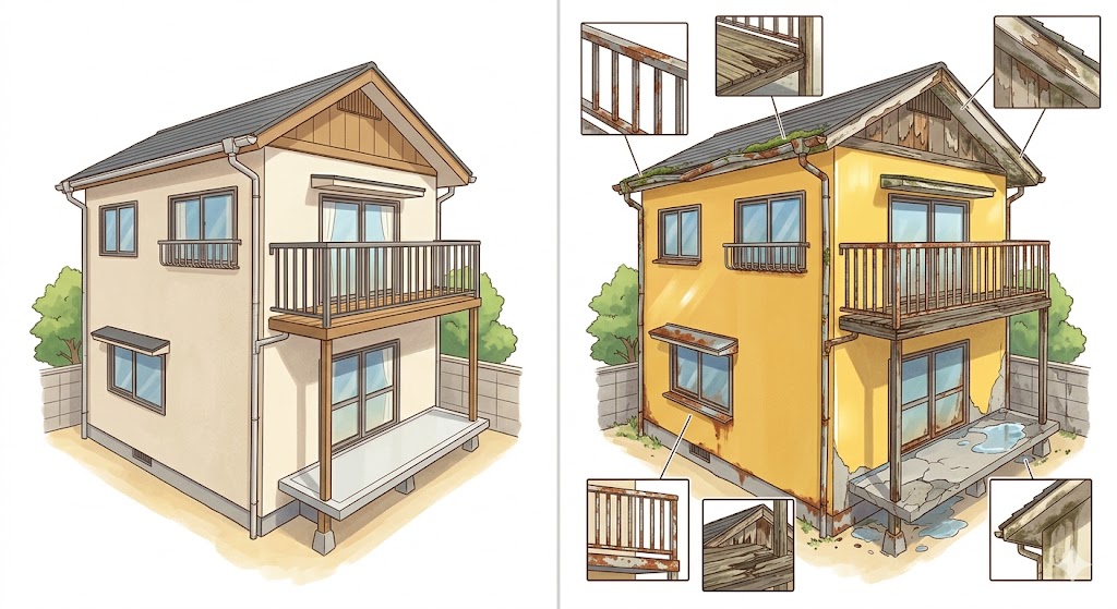 外壁だけ良い塗料を使っても、付帯部が先に傷めば、全体としては中途半端になります。