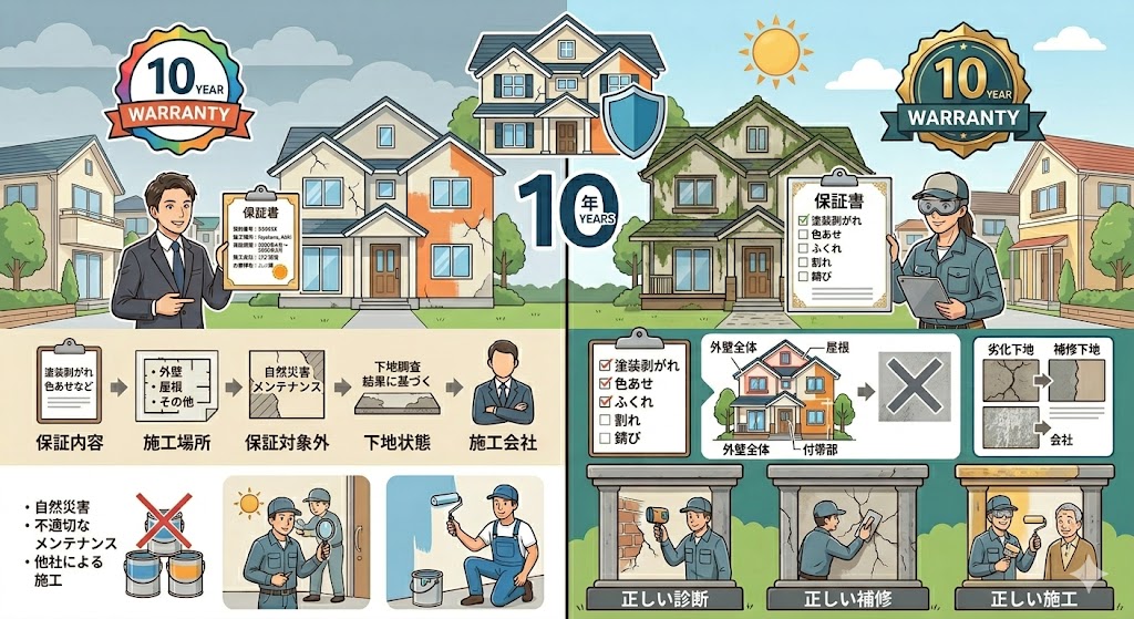 大事なのは、 ●何を保証してくれるのか ●どこまでが対象か ●何が対象外か ●下地の状態で条件が変わるのか ●誰が責任を持つのか |