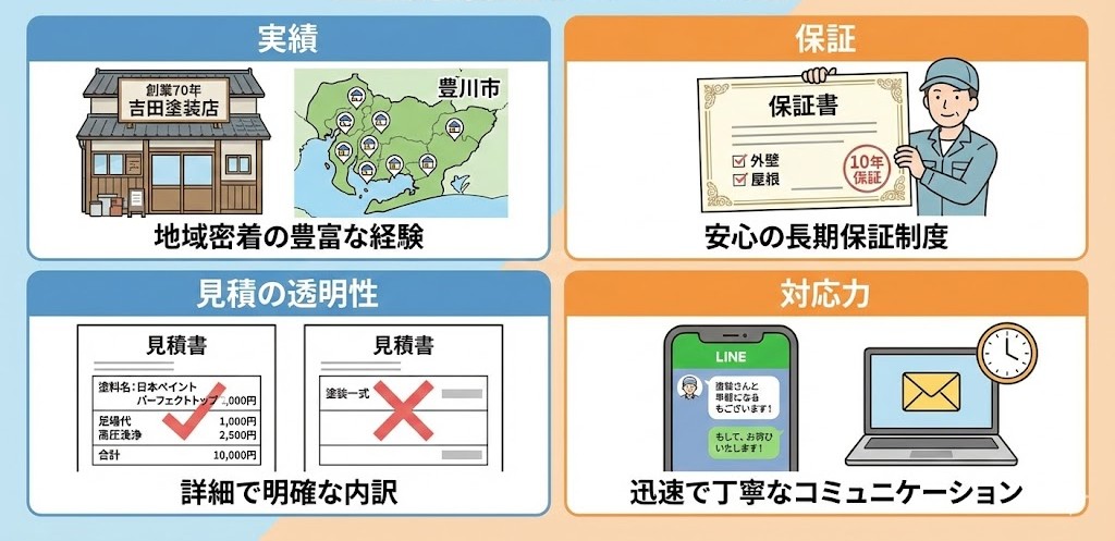 特に豊川市のように地域密着型の業者が多いエリアでは、信頼できる業者を選べるかどうかが満足度を大きく左右します。