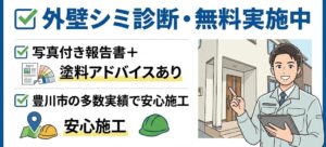 | この記事では、 ✅ 豊川市で多い外壁シミの種類と原因 ✅ 塗装で改善できる症状/できない症状 ✅ 費用相場と施工事例 ✅ シミを防ぐ塗装の工夫 をわかりやすく解説します。 |