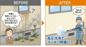 「外壁に茶色いシミが…」「なんとなく汚れてきたけど、洗えば取れる?」