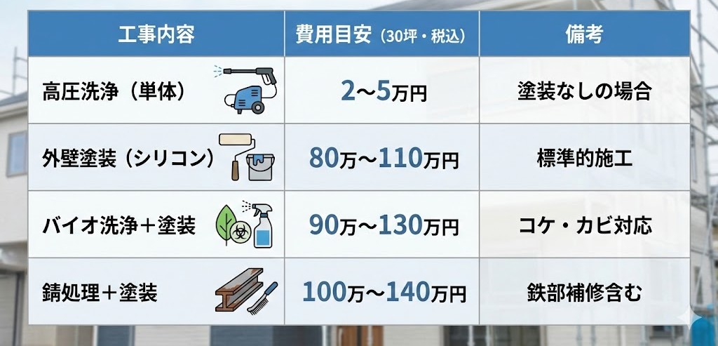 → 「洗浄」「下地処理」「使用塗料」の記載が明確か確認しましょう。
