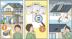 ●見積書に「一式」としか書かれていない業者は要注意 ●塗料のメーカー名・製品名・耐用年数が明記されているかチェック ●保証内容が書面で出るかを確認(口頭説明のみは避ける) ●地元拠点があり、施工実績を公開しているか |
