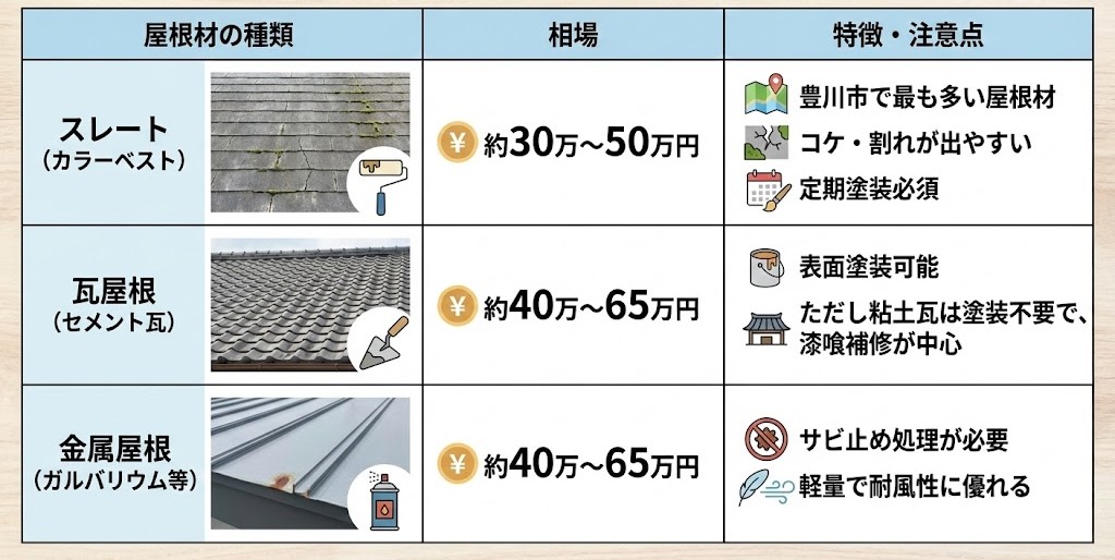 1|豊川市の屋根塗装相場(屋根材別の目安)
