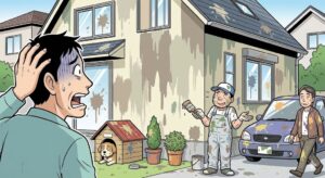 ●原因:養生が甘い/職人の技術不足 ●回避法:契約書に「外壁3回塗り・付帯部含む」と明記されているか確認する。 |