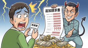 ●原因:補修項目を事前説明せず追加 ●回避法:追加工事のルール(写真提示・書面了承)か確認する。 |