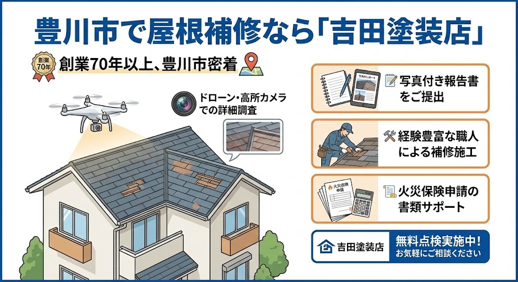 この記事では、豊川市で屋根補修を検討している方に向けて、 ●見逃しがちな劣化サイン ●補修すべきタイミング ●費用相場と工事内容 ●火災保険の活用方法 ●信頼できる業者選びのポイント をわかりやすく解説します。 |