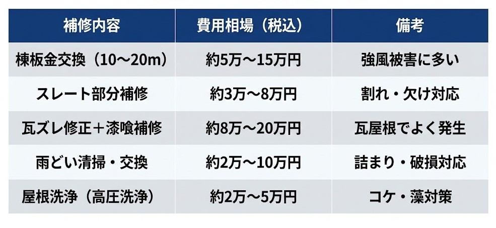3|屋根リペア内容と費用目安(30坪戸建て)