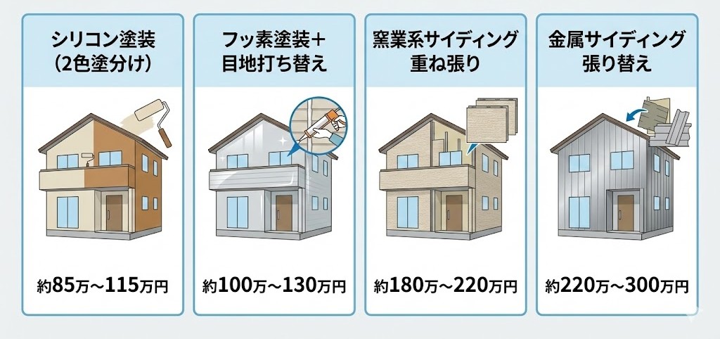 ・既存の外壁に新しい外壁材を重ねる 👉 費用目安:150万〜250万円(30坪前後) |