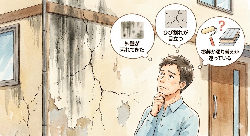 「外壁が汚れてきた」「ひび割れが目立つ」「塗装か張り替えか迷っている」といったご相談をよくいただきます。