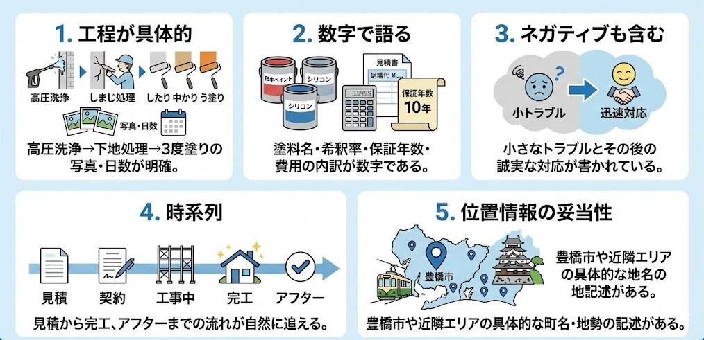 ●工程・数字・時系列がそろったレビューが“良い評価”