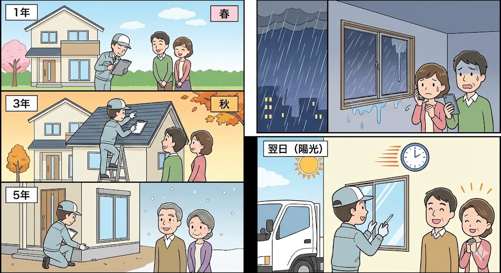 ⑦ 完了検査・引き渡し●職人・お客様・責任者の三者で仕上がり確認 ●手直しがあれば即対応 ●保証書の発行 |