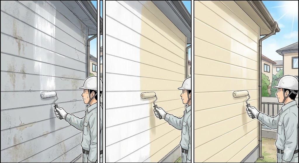 ⑥ 塗装工程1.下塗り(密着性・防水性を高める) 2.中塗り(耐久性・色の均一化) 3.上塗り(仕上げ・美観向上) 👉 豊橋市のように潮風の影響がある地域では、フッ素・無機塗料など高耐久タイプが人気です。 |