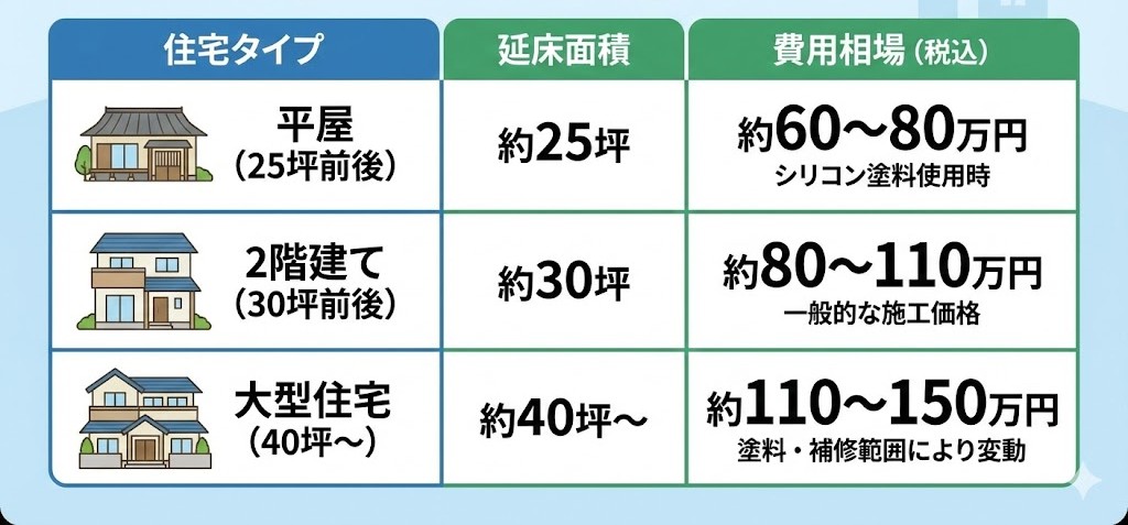 → 一般的な30坪住宅で80〜110万円前後です。
