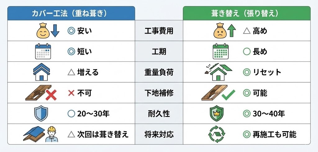4|比較表|カバー工法 vs 葺き替え