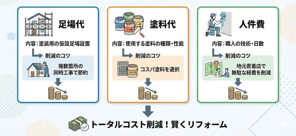 「一生に一度の塗装」ではなく、「今の家に合った塗料」を選ぶのが費用を抑えるポイントです。