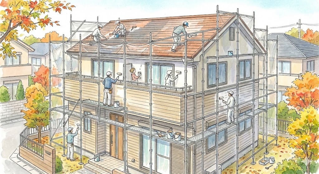✅ テクニック⑤:外壁+屋根を“まとめて塗装”