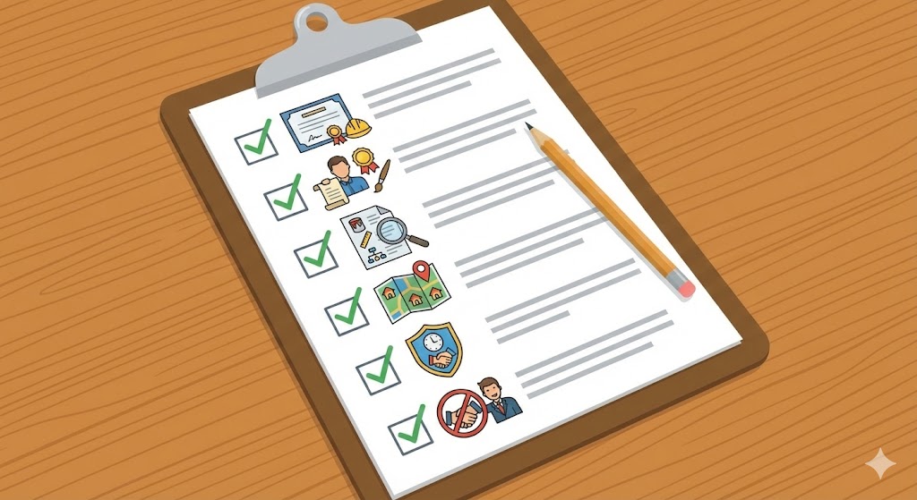 ●建設業許可や一級塗装技能士などの資格を持っているか ●見積書に「塗料名・面積・工程」が明記されているか ●豊川市での施工実績が豊富か ●下地処理や補修を省かないか ●保証やアフターサービスが明確か ●契約を急がせず、説明が丁寧か |